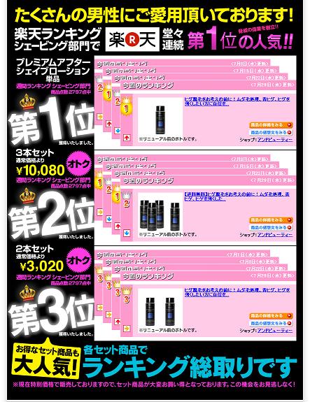 【プレミアムアフターシェイブローション】楽天男性用コスメランキング1位!ヒゲ・ムダ毛撃退